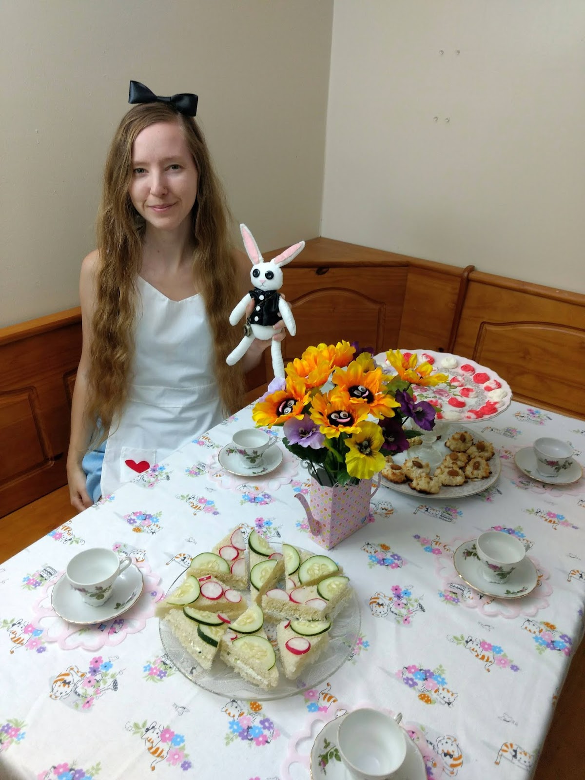 Alice in Wonderland birthday party a few years back. The "flowers with faces" centerpiece was also from that party. Check out